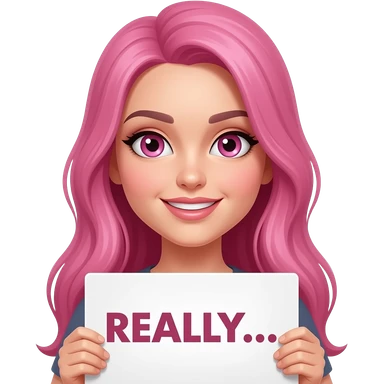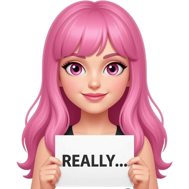 sexy girl with long pink hair and pink eyes wearing a holding a REALLY... sign emoji