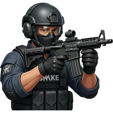 male swat officer wearing a helmet, white skin and sharp jawline, and green eyes emoji