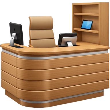 Reception Young girl, straight hair, wearing uniform jacket with hotel name badge, tasteful scarf, stand behind the desk emoji