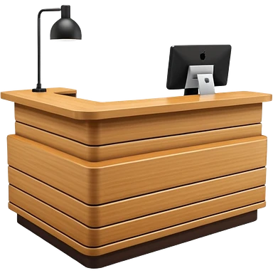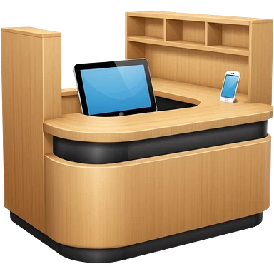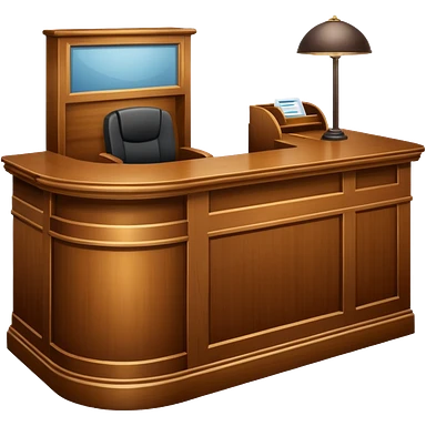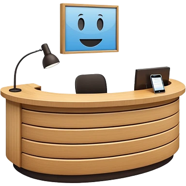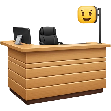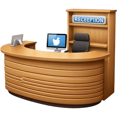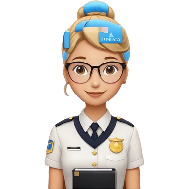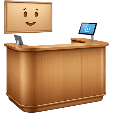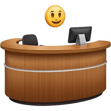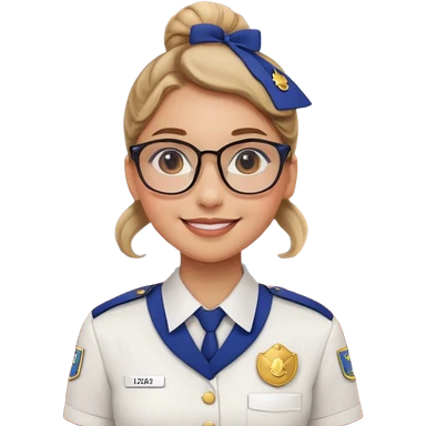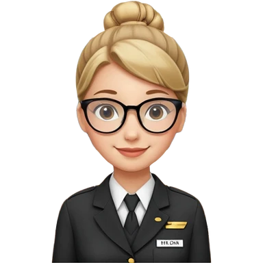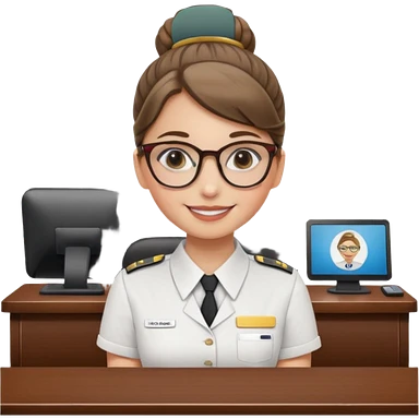 Reception Young girl, bun hair, wearing uniform of reception with hotel name badge, glasses, stand behind the desk emoji | AI Emoji Generator