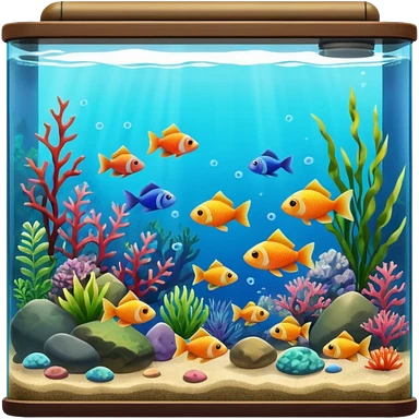 A big bulky long rectangular fish tank with lots of aquatic life in it emoji