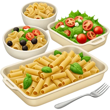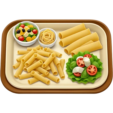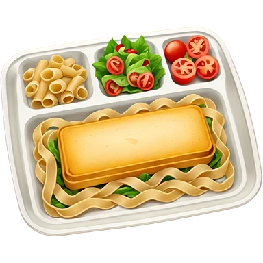 rectangle tray meal with pasta, salad desert emoji