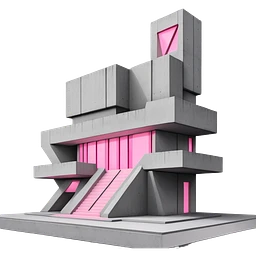 Rectangular gray concrete building with purple UV light shining from a single window, urban brutalist architecture emoji | AI Emoji Generator