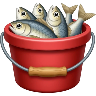 red fishing bucket filled with some firsh emoji