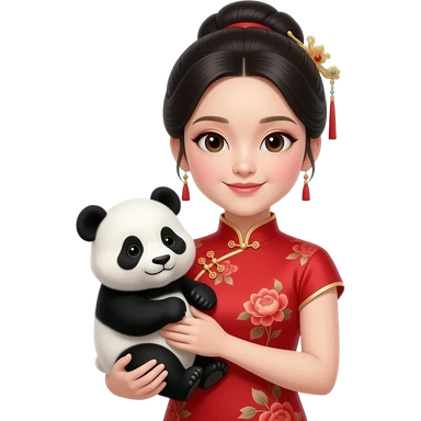 red Chinese Princess with baby panda closeup emoji