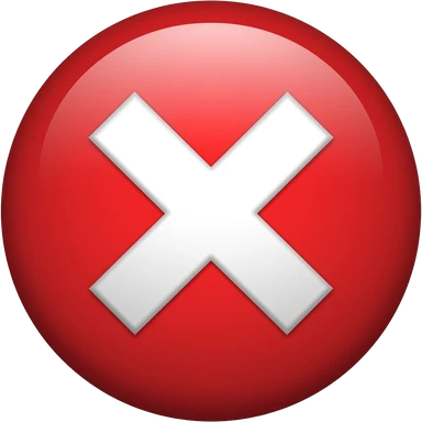 Red circular cross icon, white X(wrong) symbol in center, glossy 3D button style, smooth surface, soft shadow, minimal design, centered composition, high resolution emoji