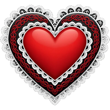 red and black heart with white lace, more black than red emoji | AI Emoji Generator