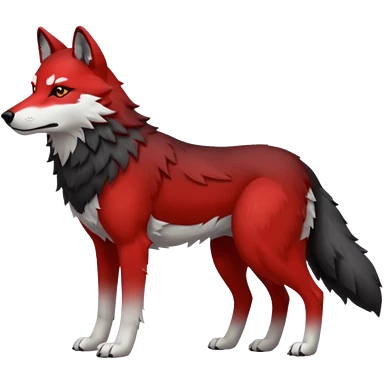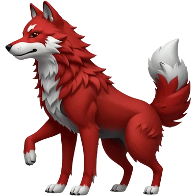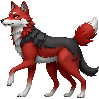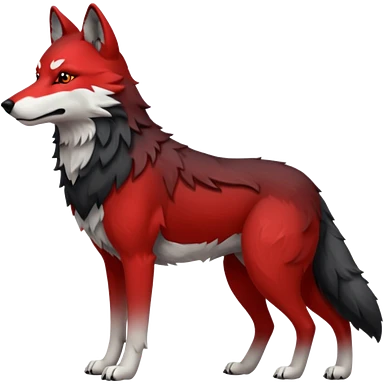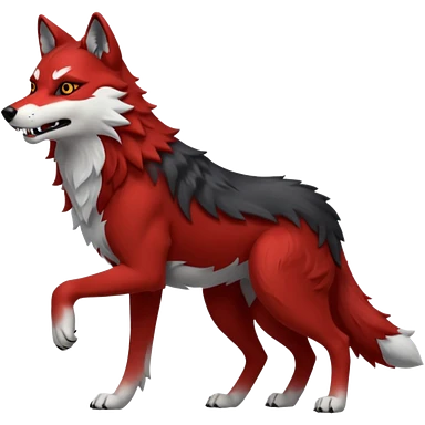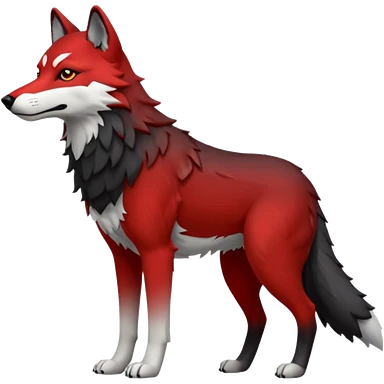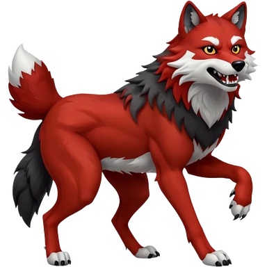 Red and black wolf with white accents smiling emoji | AI Emoji Generator