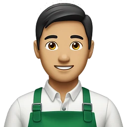 malay male starbucks barista with white t shirt and green apron, and starbucks logo in the middle of apron emoji