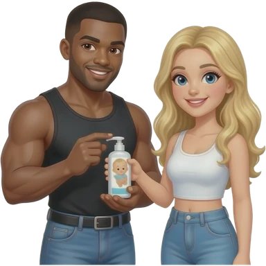 Jacked black guys holding baby oil with a pretty white girl emoji
