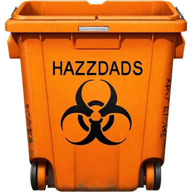 empty orange BIN WITH "HAZARDOUS WASTE" WORD IN IT. CORRECT SPELLING PLEASE emoji