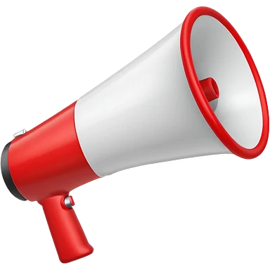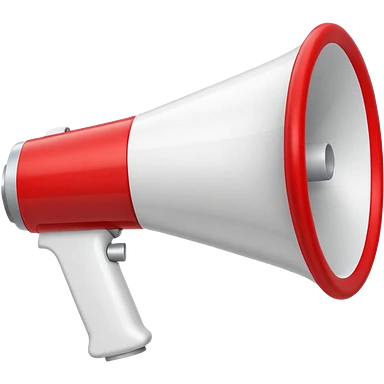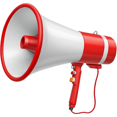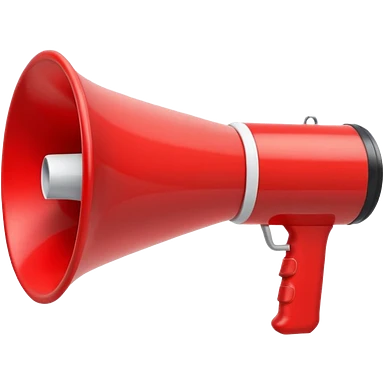 A detailed megaphone with a metallic body and glossy red cone emoji