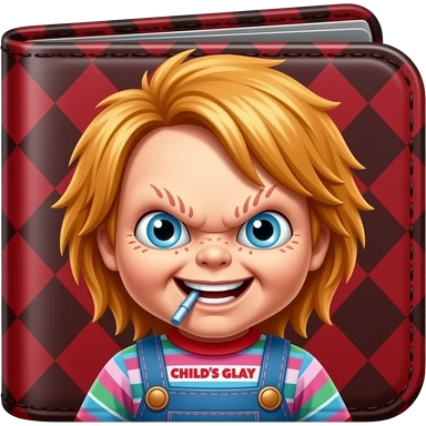 Chucky Doll Child's Play Man's wallet in red and black and white with Chucky Doll the Good Guy on the Man's wallet emoji