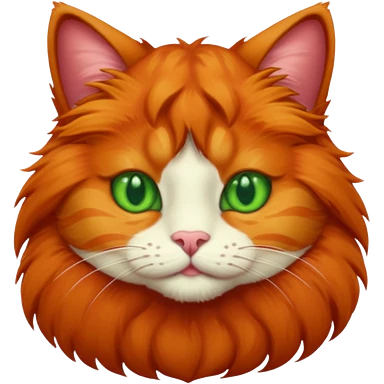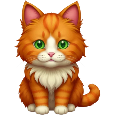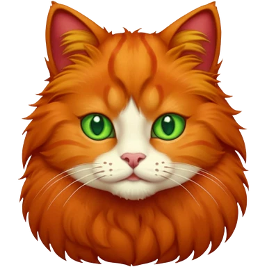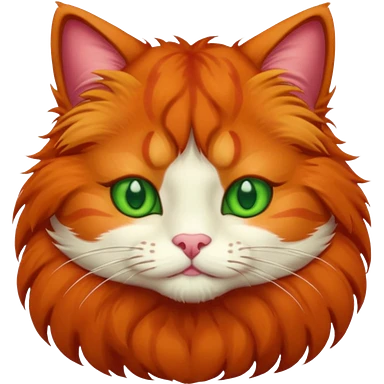 red cat with a white breast, a red spot on the chin. yellow eyes. fluffy. emoji