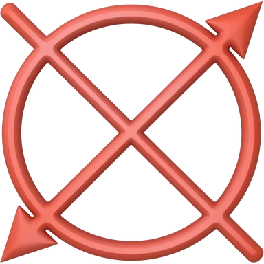 Red filled circle with white X and arrow on all end points on the X white circle in the middle. Biggest possible CCTV word in the centre emoji