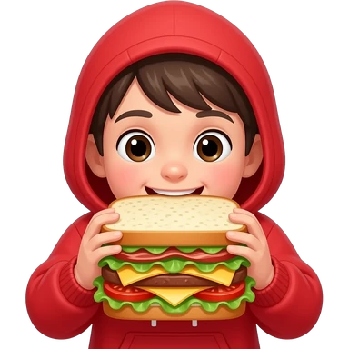 red clothes kid eating sandwich emoji | AI Emoji Generator