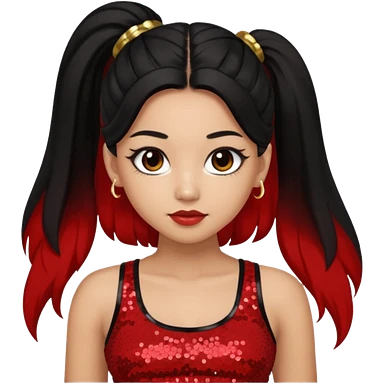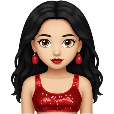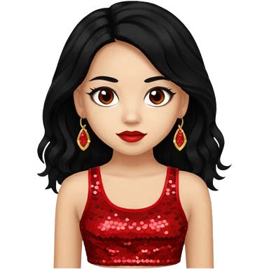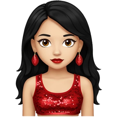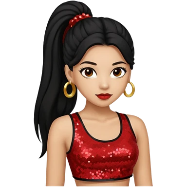 Jade from Bratz with long black ponytail hair, light skin, brown eyes, red sequin crop top emoji