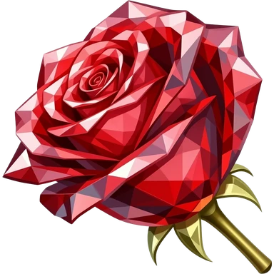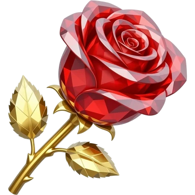 Red crystal diamond rose with gold stem emoji | AI Emoji Generator