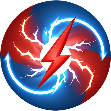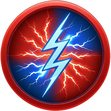 Red and blue lightening in a circle shape with effects like real lightening emoji