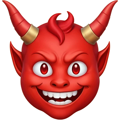 a Red devil, short horn Chibi red demon hold a trident emoji