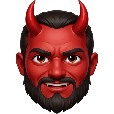 A red demon smiley face holding a trident and it looks like this (😈) but red and holds a golden trident emoji