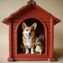 red dog house with a Corgi dog inside, Corgi peeking out, semi-realistic with emoji-like face and proportions emoji | AI Emoji Generator