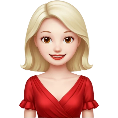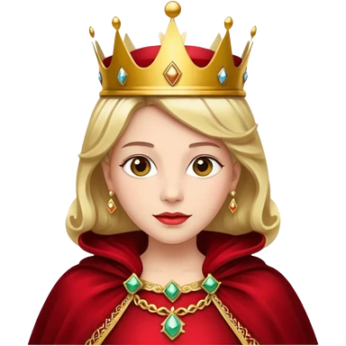 blonde queen blue eyes, red dress emoji