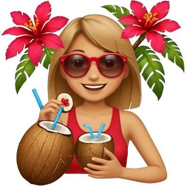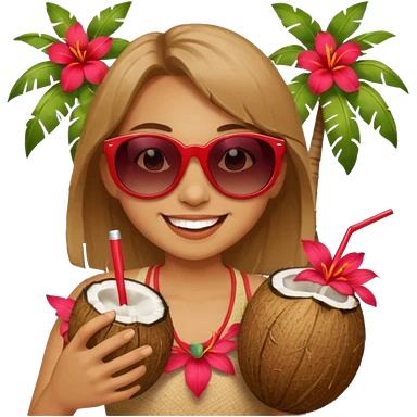 coconut drink with red flowers and summer vibe, with sunglasses and smiling emoji