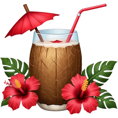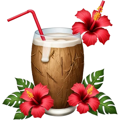 coconut drink with red flowers emoji