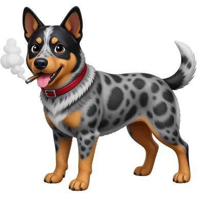 Red heeler hitting vape emoji