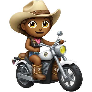 Baby girl wearing cowboy boots holding tennis racket and ridding electric motorcycle emoji