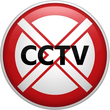 Red filled circle with white X and arrow end points on the X. Big CCTV word in the centre emoji