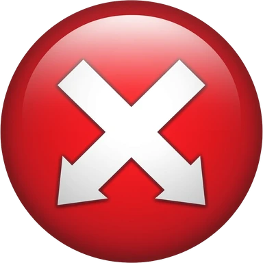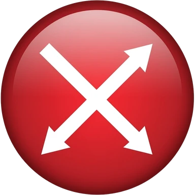 Red filled circle with white X and arrow on all end points on the X white circle in the middle. Biggest possible CCTV word in the centre emoji
