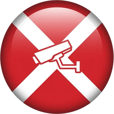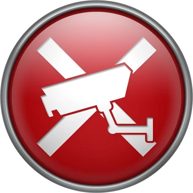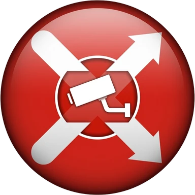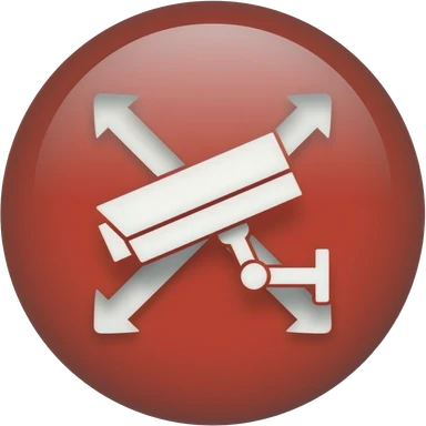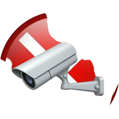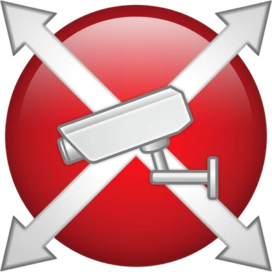 Red filled circle with white X and arrow end points on the X, CCTV in the centre emoji
