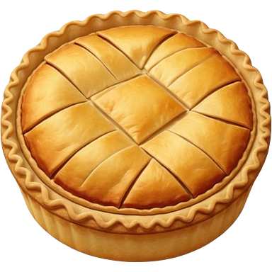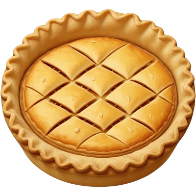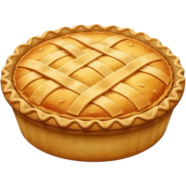 A highly detailed, photorealistic 3D render of a small, individual apple pie, with a golden-brown lattice crust. The filling is a rich, glistening red-amber, bubbling slightly. emoji
