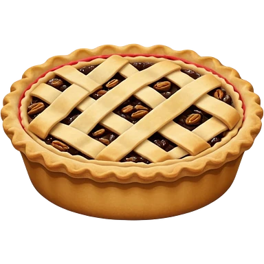 A highly detailed, photorealistic 3D render of a small, individual apple pie, with a golden-brown lattice crust. The filling is a rich, glistening red-amber, bubbling slightly. emoji