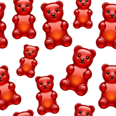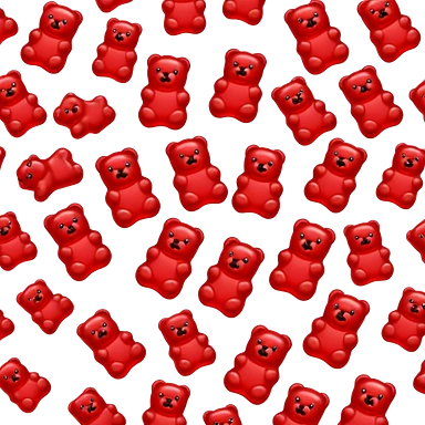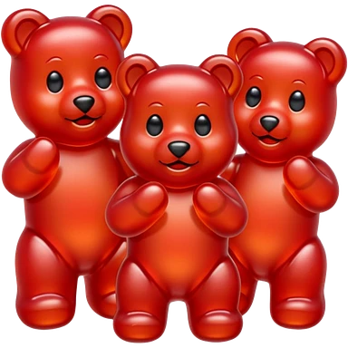House of gummy with 3 gummy bears: blue gummy bear, green gummy bear and champagne gummy bear emoji