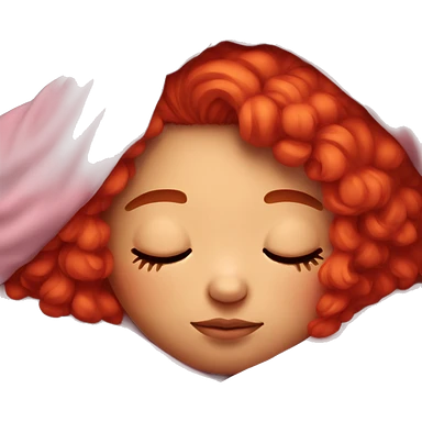 Red hair girl with long wavy hair sleeping with pink blanket and cute pillow emoji
