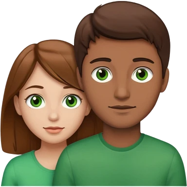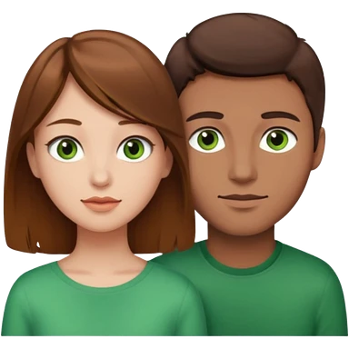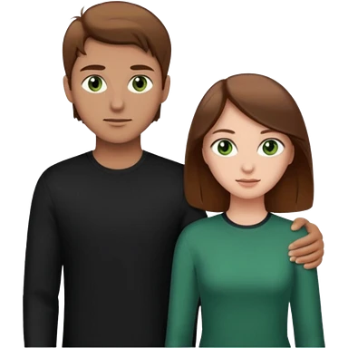 A boyfriend with light brown hair and green eyes next to his girlfriend with dark brown hair and dark brown eyes both are white emoji