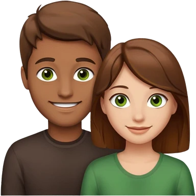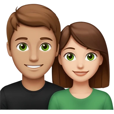 A boyfriend with light brown hair and green eyes next to his girlfriend with dark brown hair and brown eys emoji