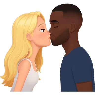 Blonde woman kissing black man with shaved head emoji
