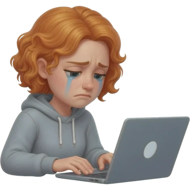 red hair woman wearing glasses crying frustrated desk monitor stack paper emoji | AI Emoji Generator