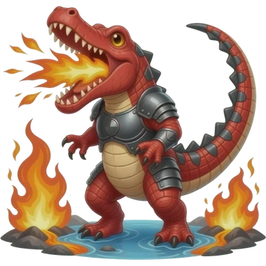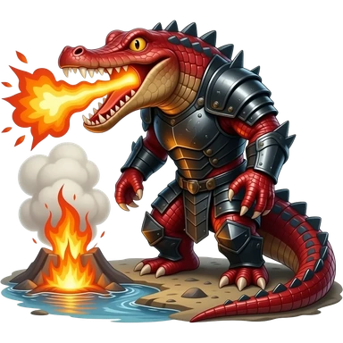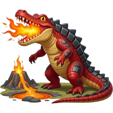 A red crocodile-like monster with charcoal armor plates and a furnace-hot jaw. It lurks near geothermal rivers and snaps with explosive bursts of heat. emoji