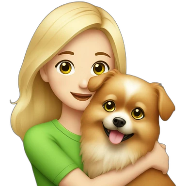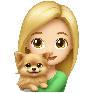 light-haired-girl-with-green-eyes,-hugs-her-pomeranian-dog,-red Download emoji emoji