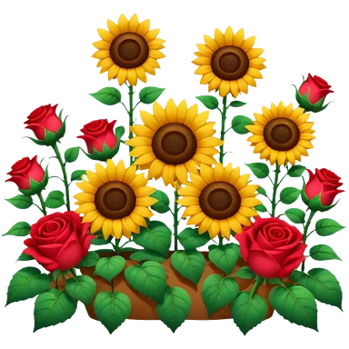 sunflowers and red roses bouquet in a ceramic blue vase emoji