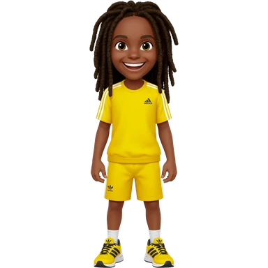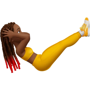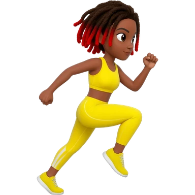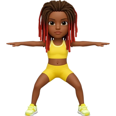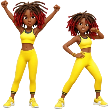 African American girl with shoulder length dreadlocks brown with red tips, In yellow working out clothes in various work out poses emoji