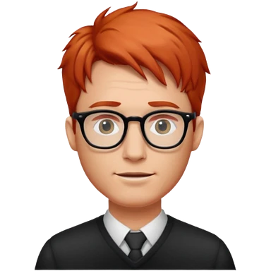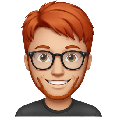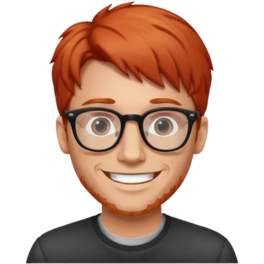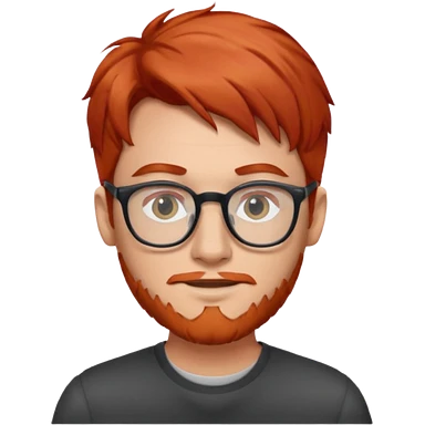 Red-haired man with curly hair and a beard, wearing a black Nike t-shirt and sunglasses emoji