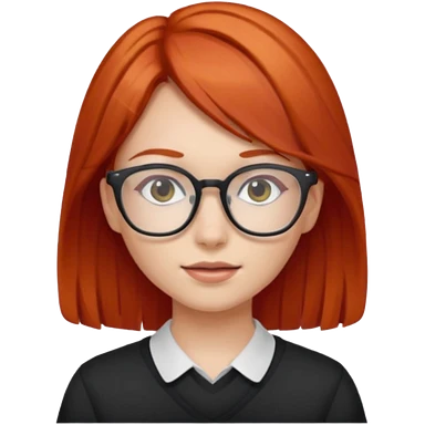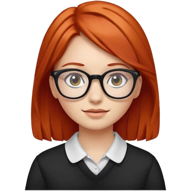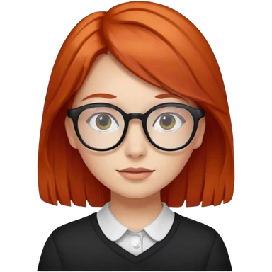 red haired woman wearing college outfit, not wearing glasses, white face emoji