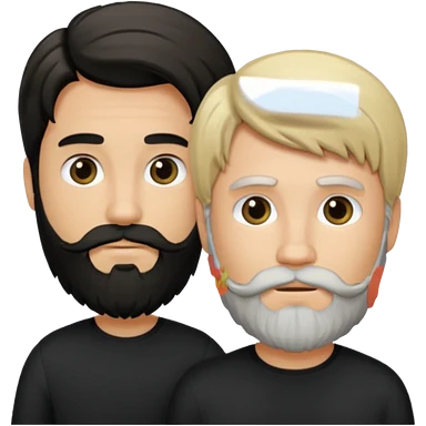 Man with a beard and long hair black gathered with another short-haired blond man whitout beard emoji