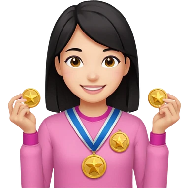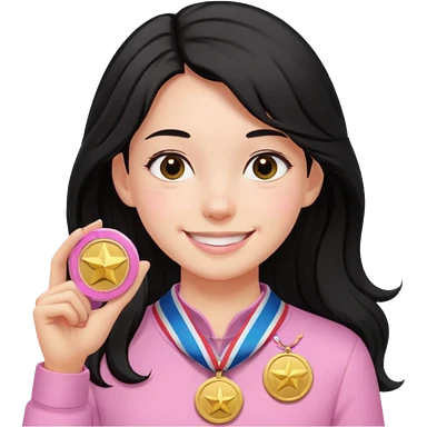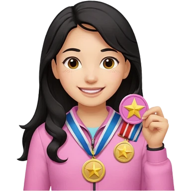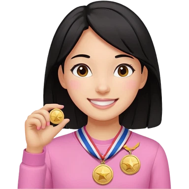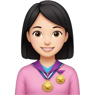 black haired girl wearing pastel pink with medals remove any hats, make her smile emoji